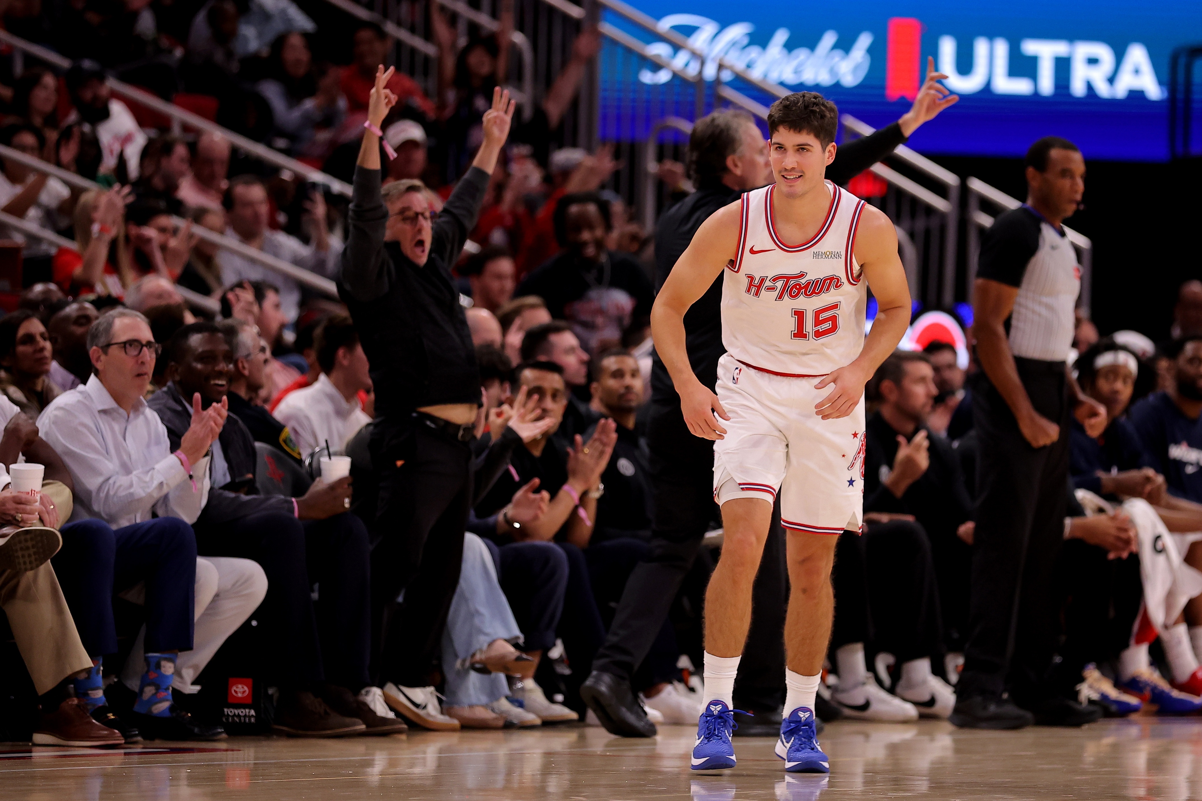 据火箭记者Will Guillory统计,火箭队史仅有六人做到过单场15分7板10助攻5抢断,分别是:哈登(8次)、约翰·卢卡斯(2次)、奥拉朱旺、弗朗西斯、皮蓬、谢泼德。